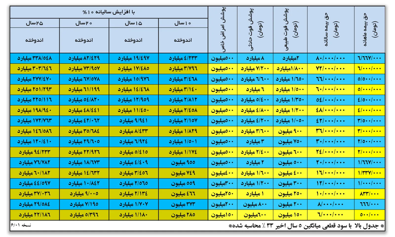 جدول سود بیمه عمر سامان