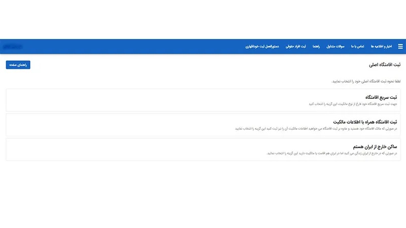 توی بخش «املاک تحت مالکیت» گزینه «ثبت اقامتگاه» رو انتخاب کنی.