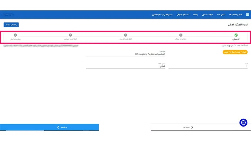 گام دوم: ثبت کد پستی بر اساس وضعیت ملک